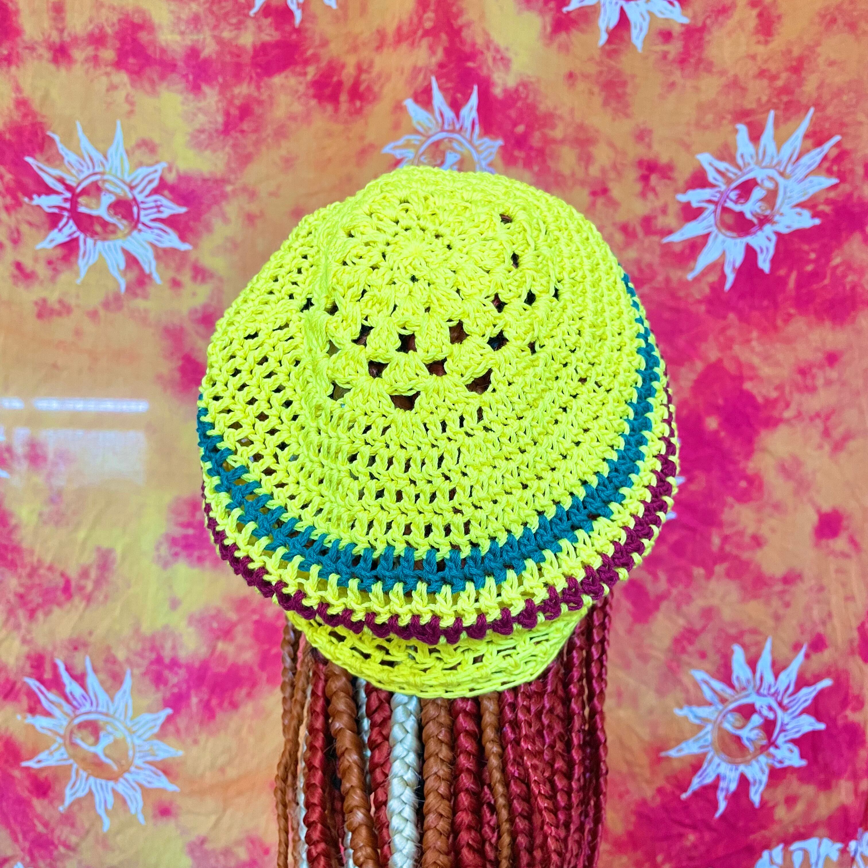 春夏 ハンドメイド かぎ編みタム サマーニット ラスタカラー