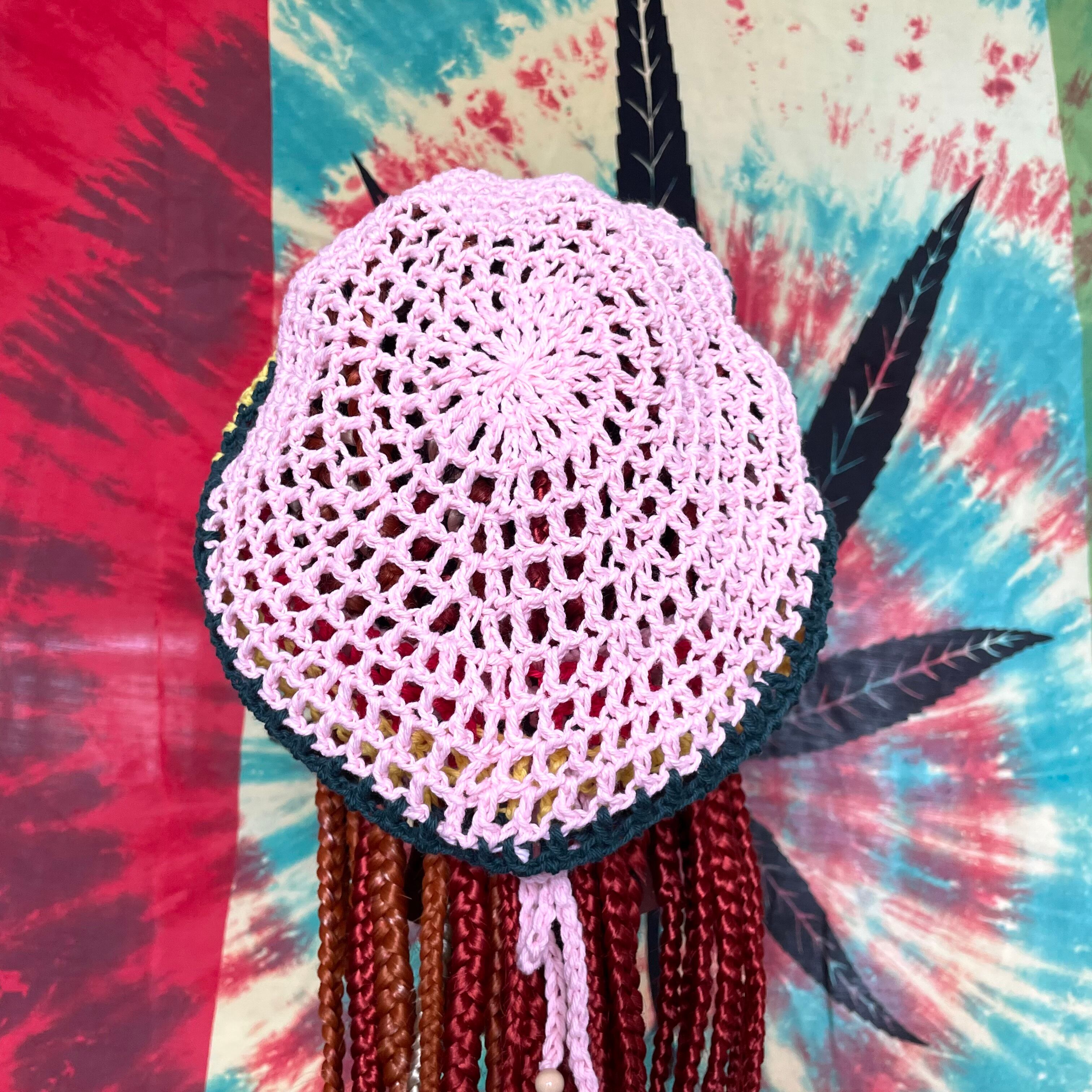春夏 かぎ編みタム ハンドメイド 薄ピンク