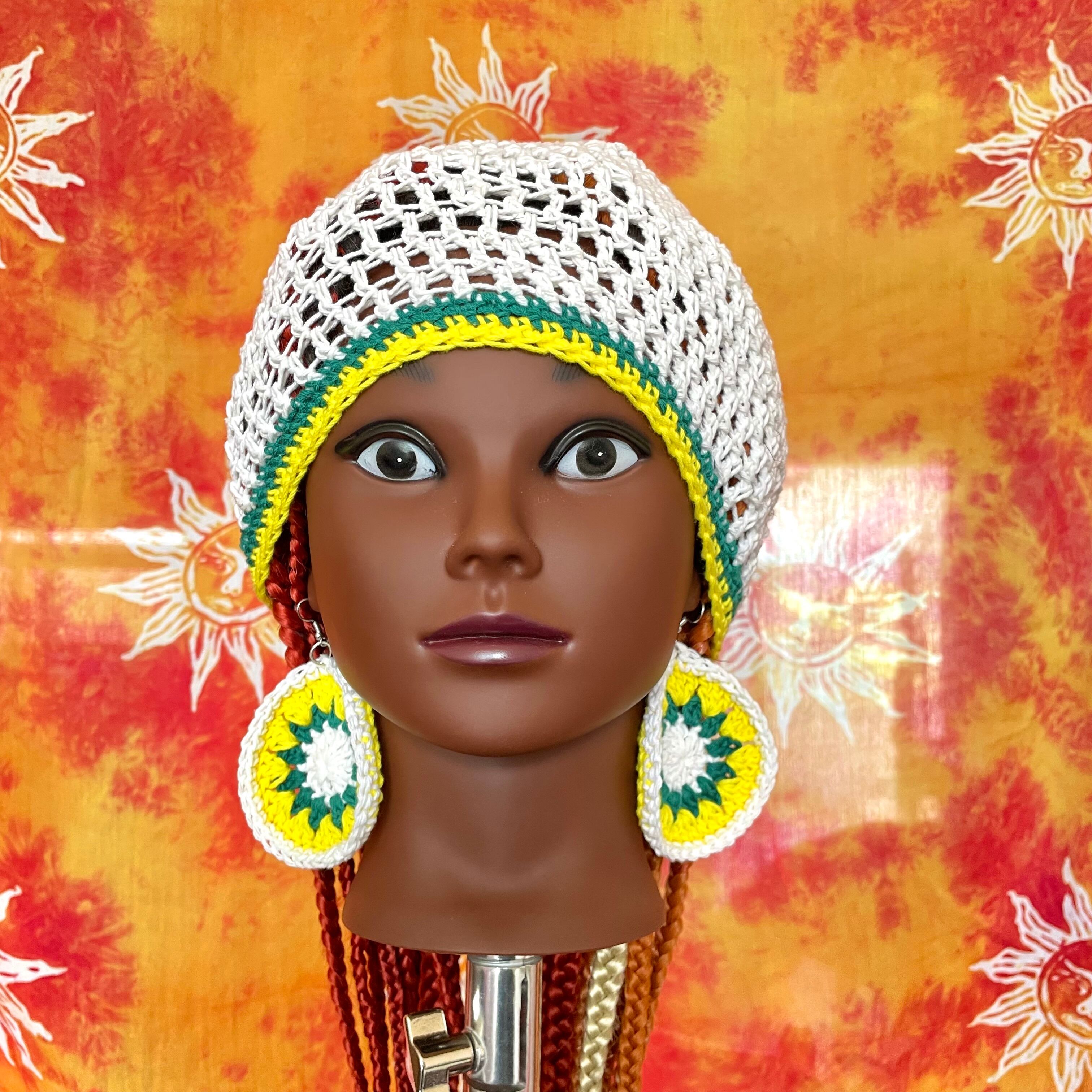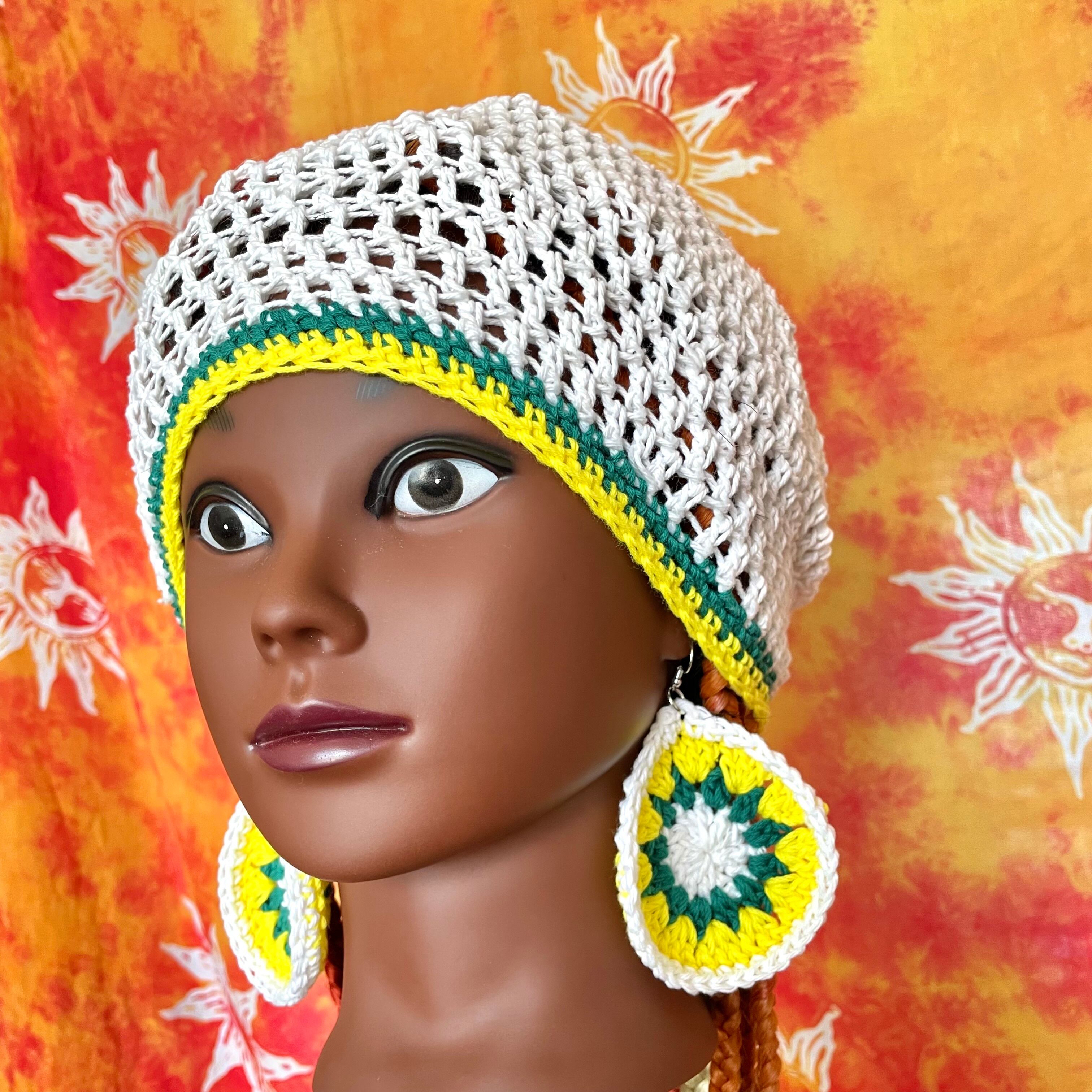 ハンドメイド 手編み 編み物 かぎ編み クロシェ編み ヒッピー サイケデリック ボホ 毛糸グラニースクエア 古着 一点物 ジャマイカタム帽 タム ベレー帽 ラスタマン ドレッド かぎ編みニット帽 クロシェハット クラッシャーハット レゲエ jamaica jamaicanhat rastmanhat tam beret rastaman y2k Hippie Psychedelic Boho Grunge 2000s handmade crochet granny