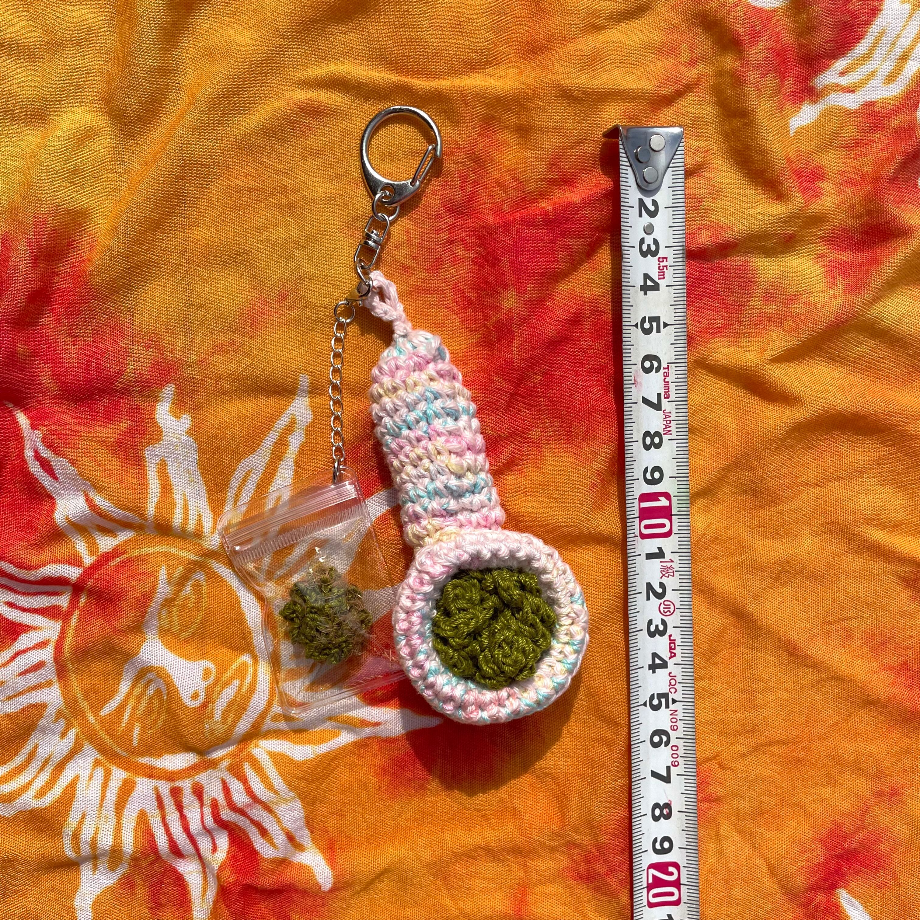 パケ付きパイプキーホルダー かぎ編みハンドメイド